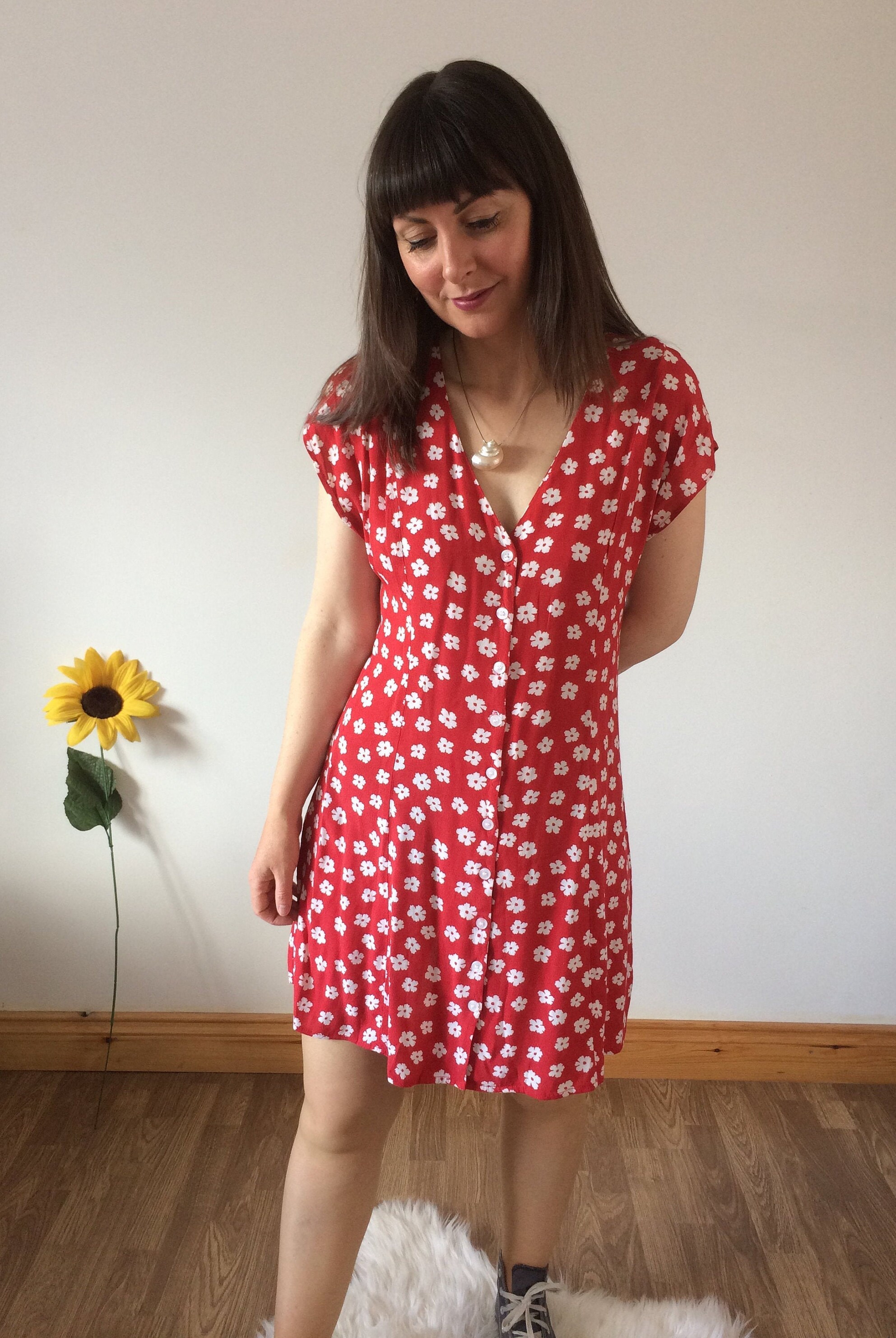 Vintage 90s red with white floral print dress. Size M. Model is a UK size 8 for reference. Should you require measurements, photos or product information please get in touch, I'd love to hear from you! Thank you for browsing :)