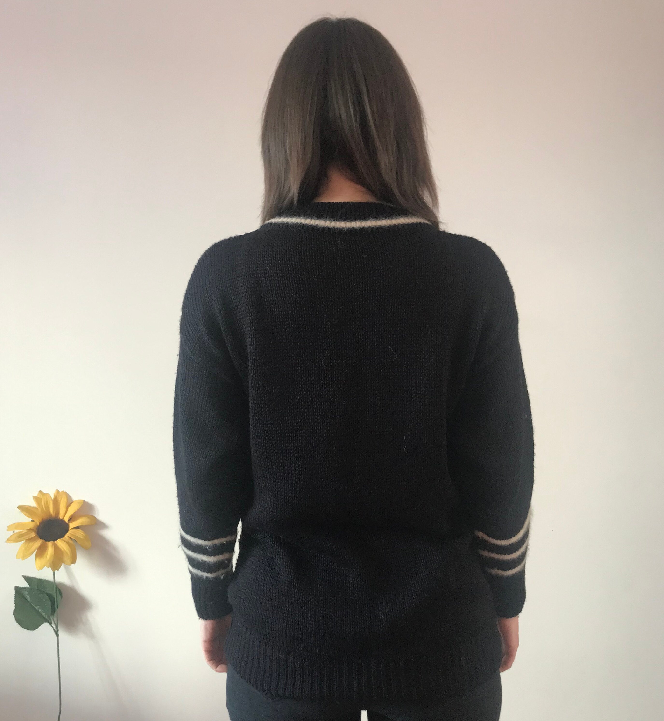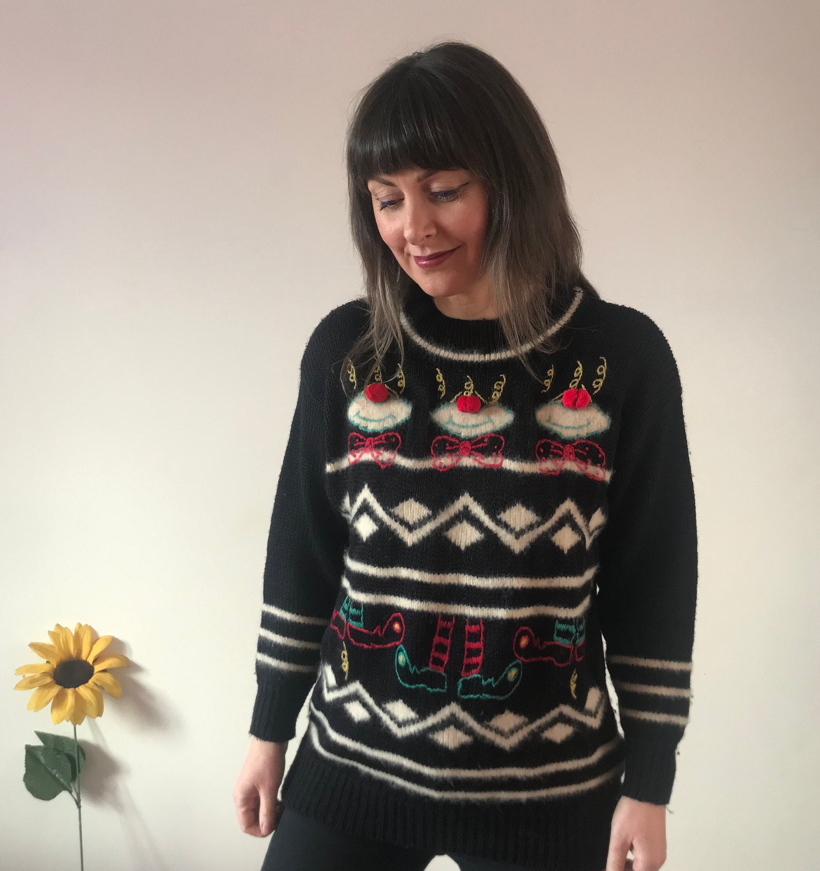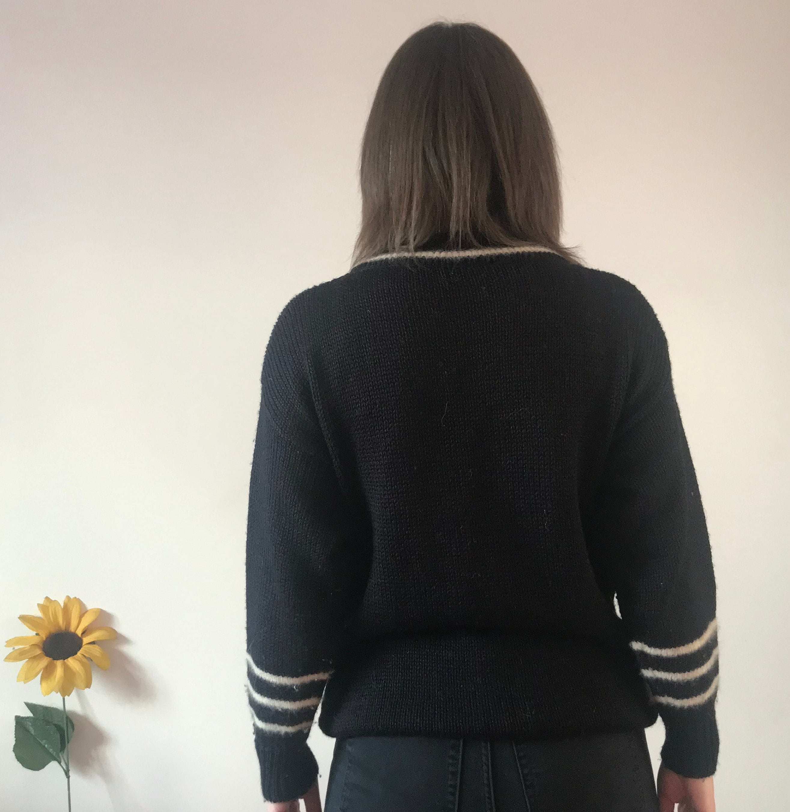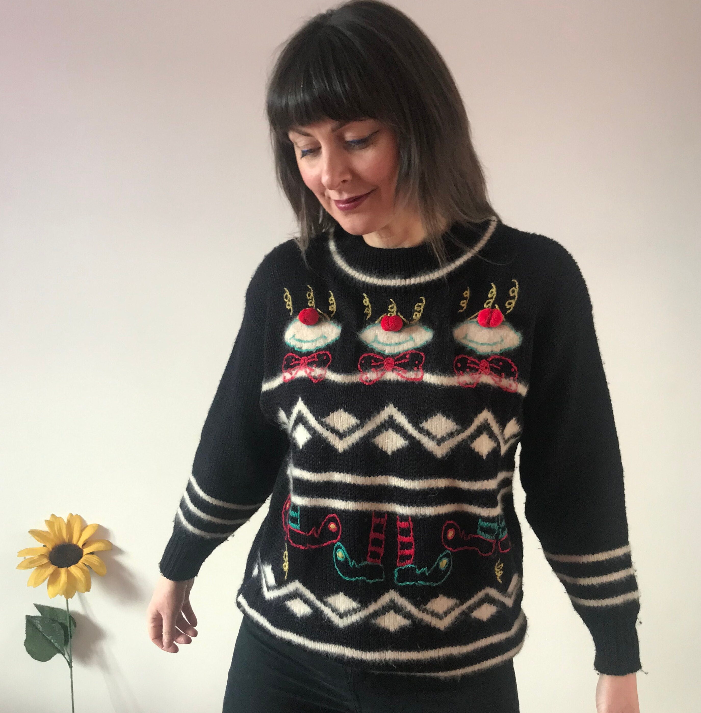 Vintage 80s Black Festive Style Jumper.Size S/M. Model is a UK size 8 for reference. In great vintage condition. Should you require measurements, photos or product information please get in touch, I'd love to hear from you! Thank you for browsing :) xx