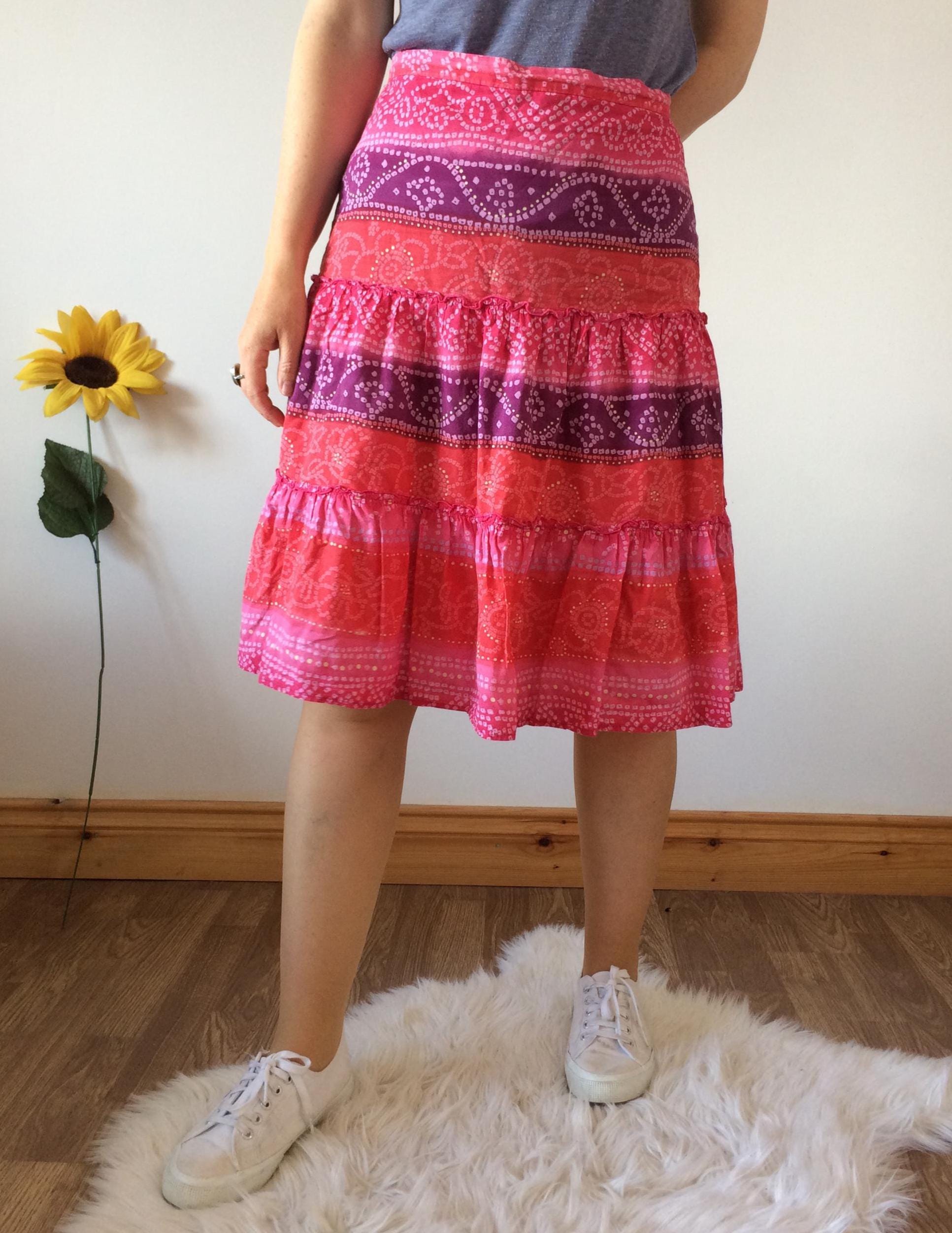 Vintage 90s Pink & Purple Midi Skirt. Size S. Model is a UK size 8 for reference. In good vintage condition. Should you require measurements, photos or product information please get in touch, I'd love to hear from you! Thank you for browsing :) xx