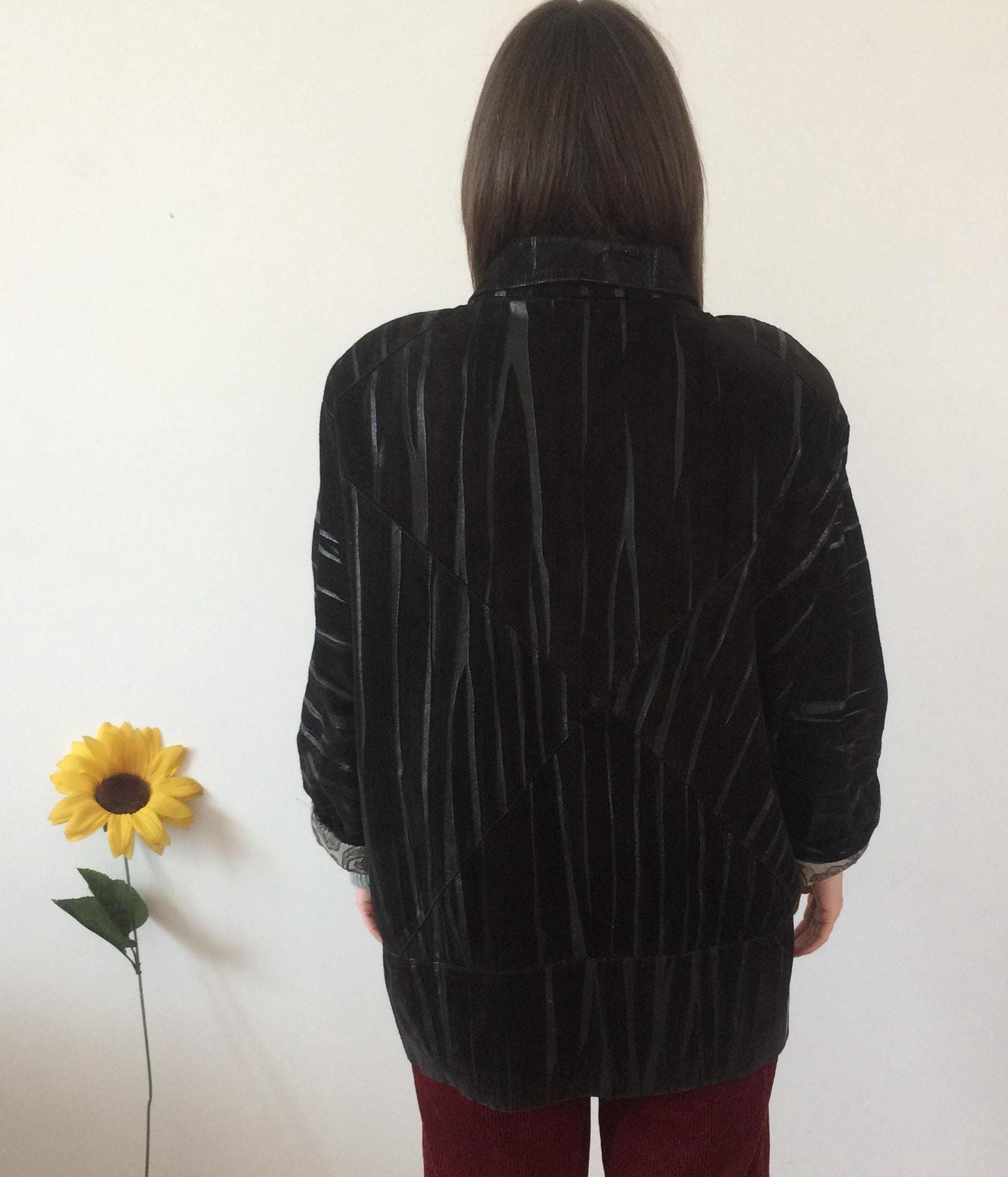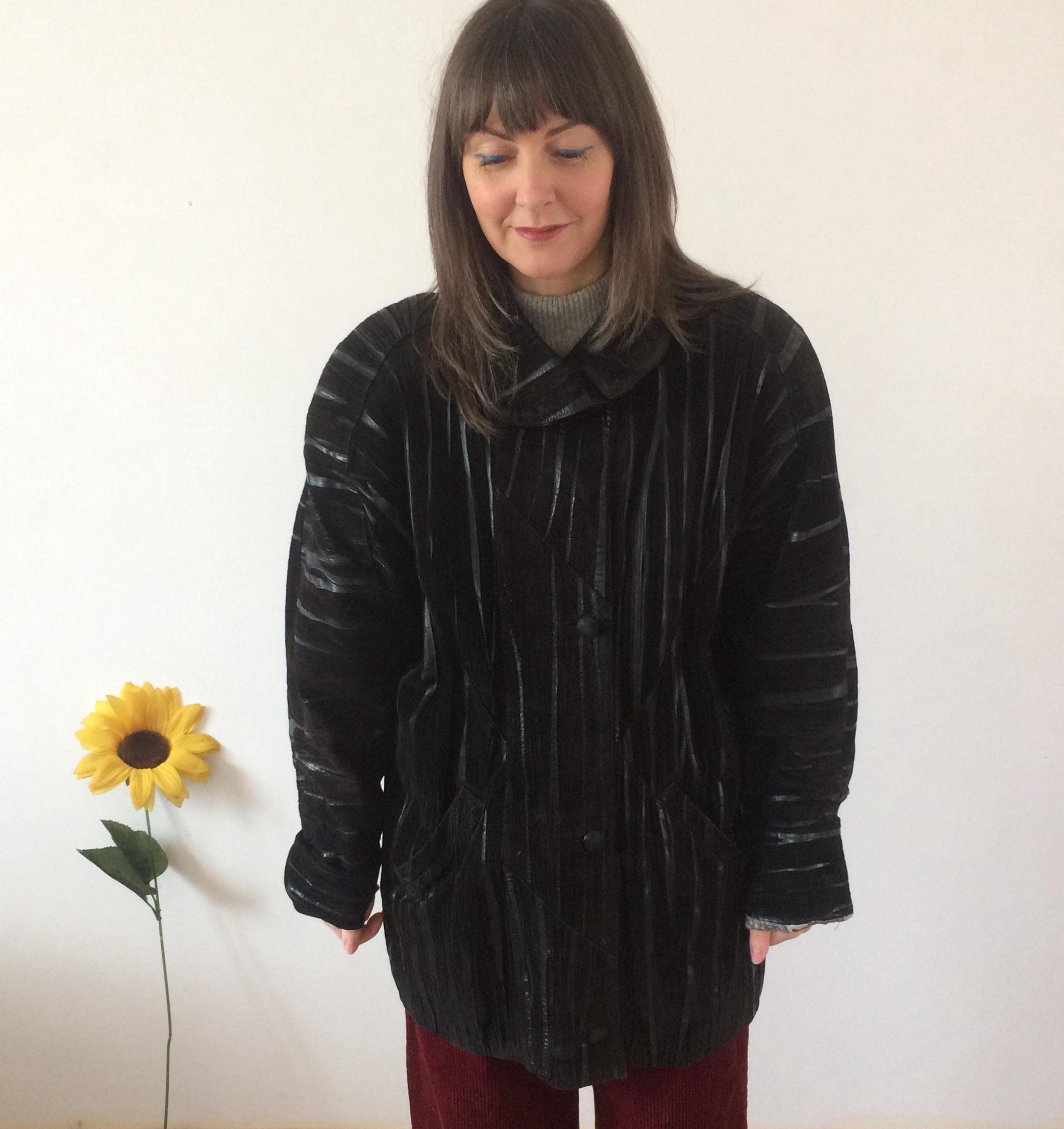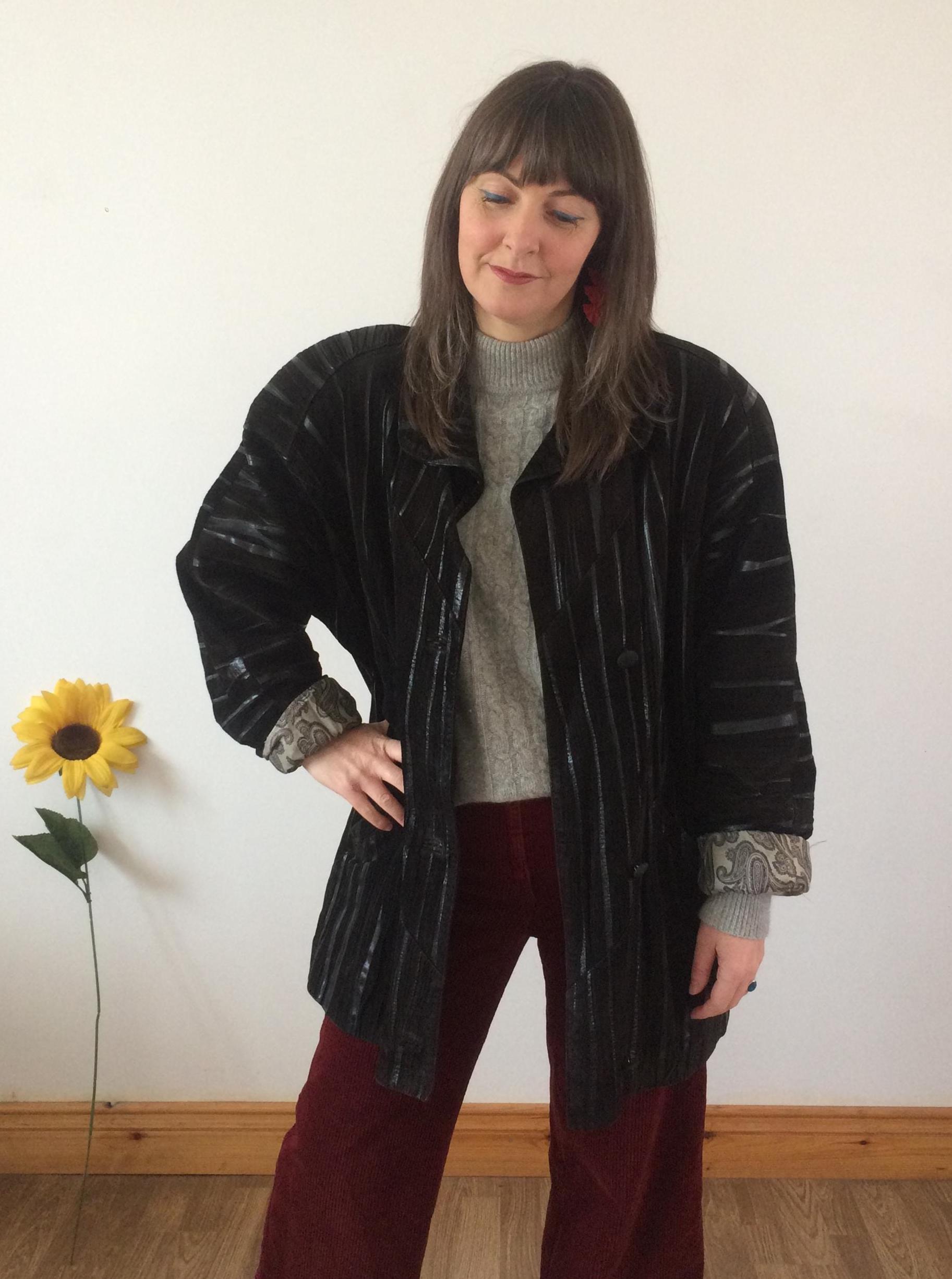 Vintage 80s Black Leather Coat. Size L/XL. Model is a UK size 8 for reference. Should you require measurements, photos or product information please get in touch, I'd love to hear from you! Thank you for browsing :)