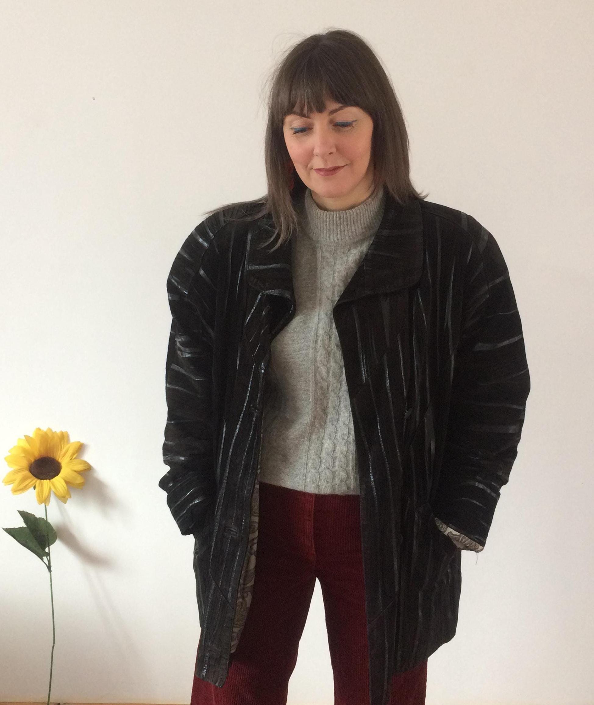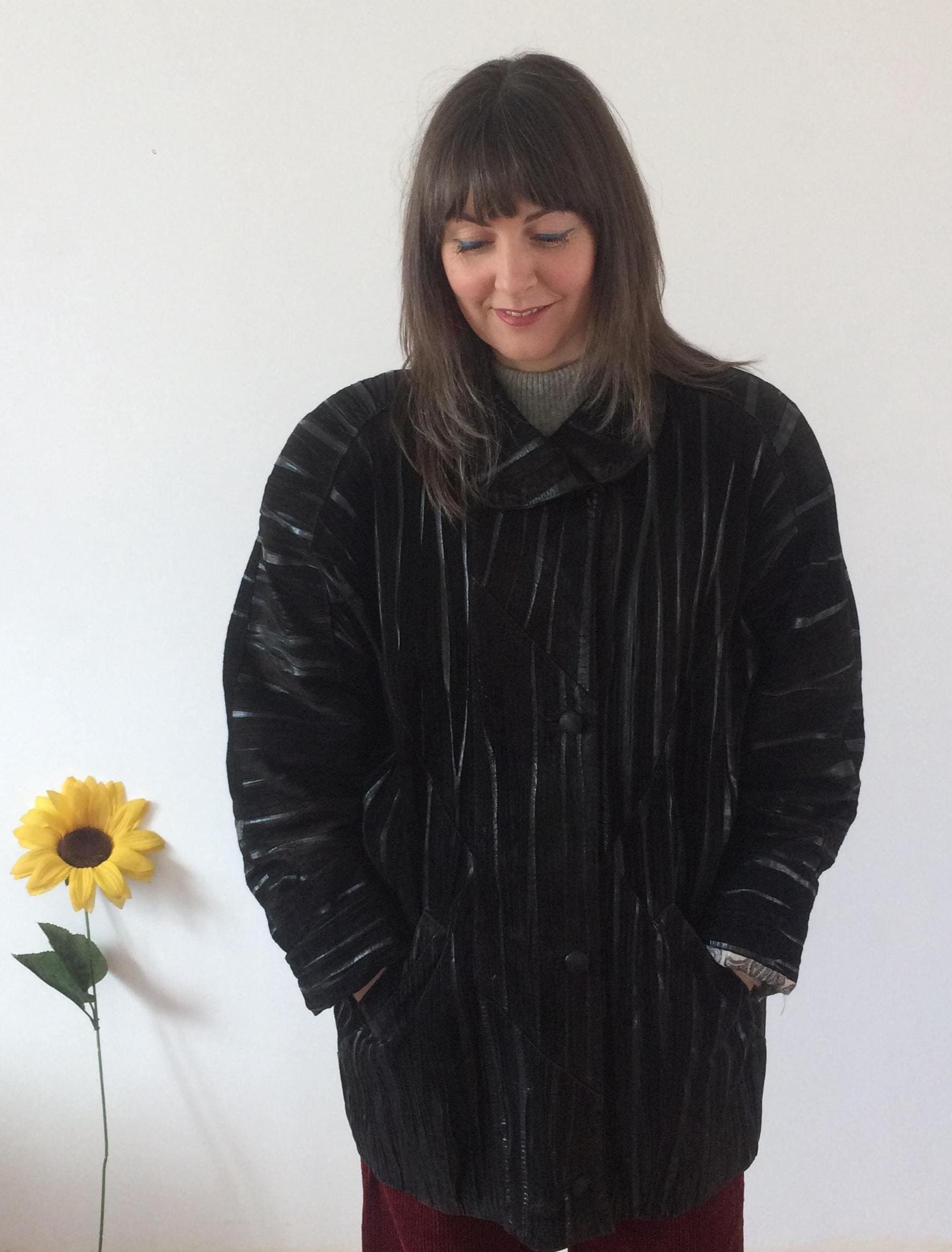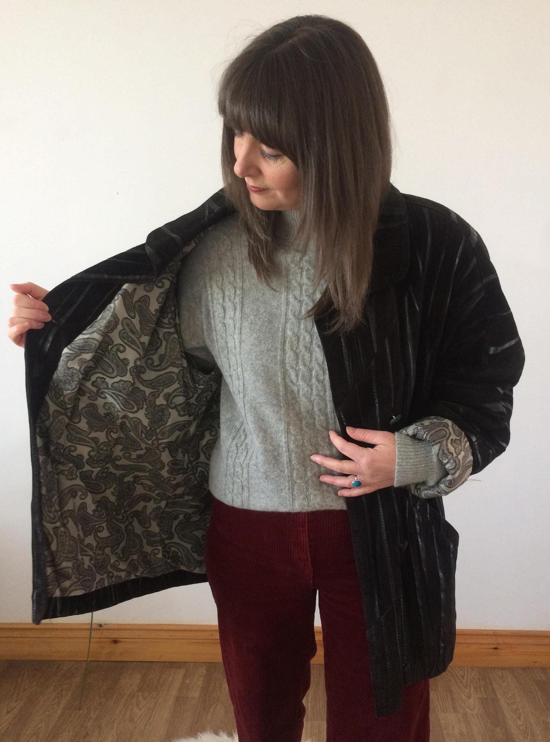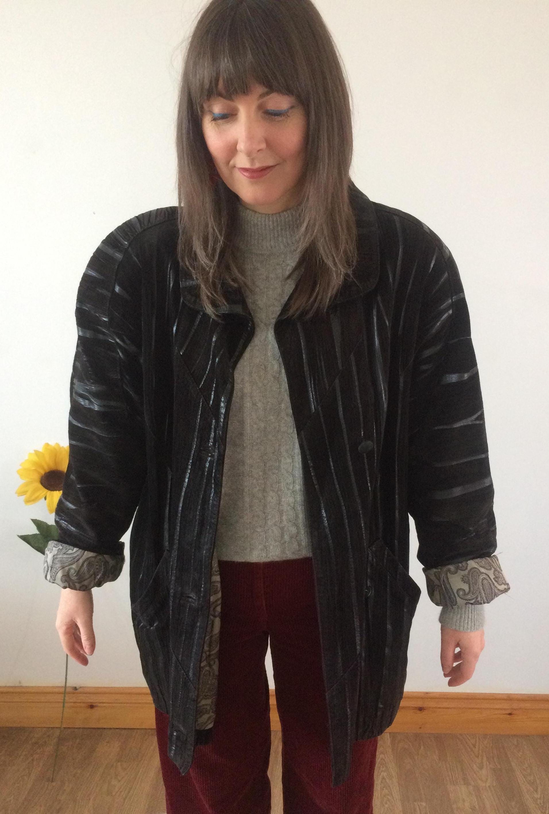 Vintage 80s Black Leather Coat. Size L/XL. Model is a UK size 8 for reference. Should you require measurements, photos or product information please get in touch, I'd love to hear from you! Thank you for browsing :)