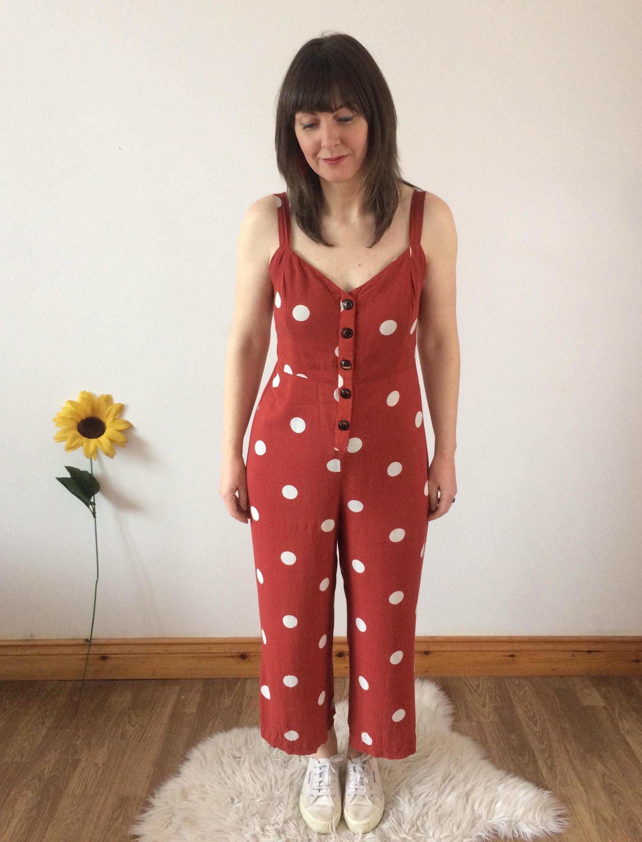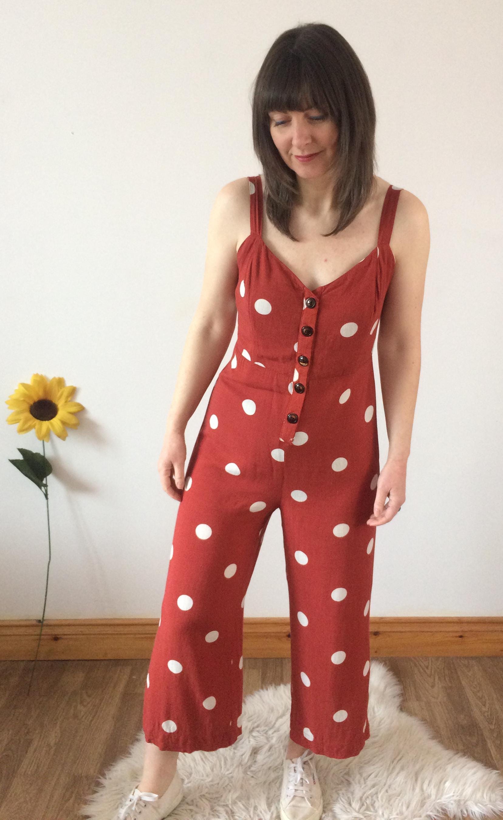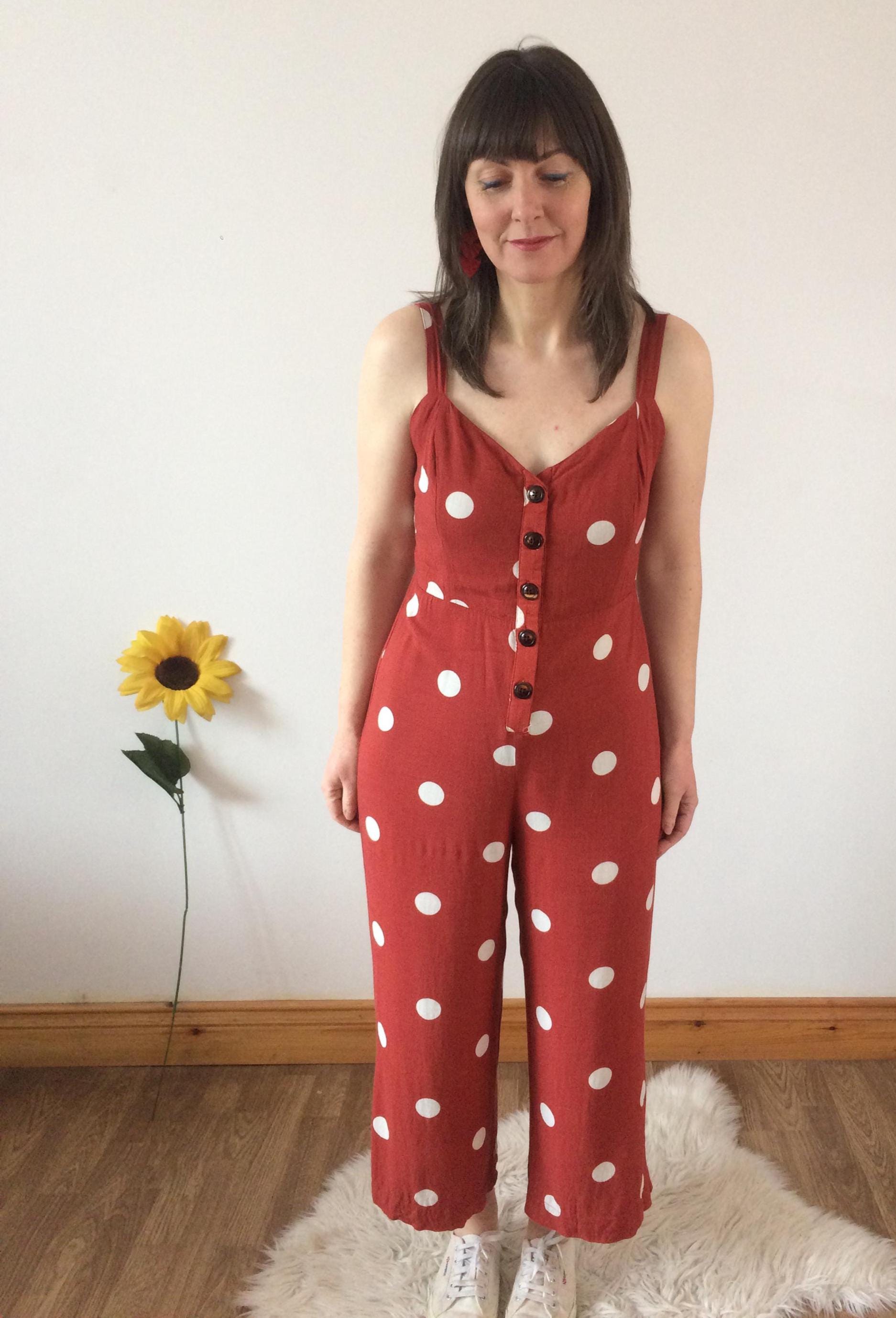 Vintage 90s Orange with White Polka Dot Jumpsuit. Size S. Model is a UK size 8 for reference. In great vintage condition. Should you require measurements, photos or product information please get in touch, I'd love to hear from you! Thank you for browsing :)
