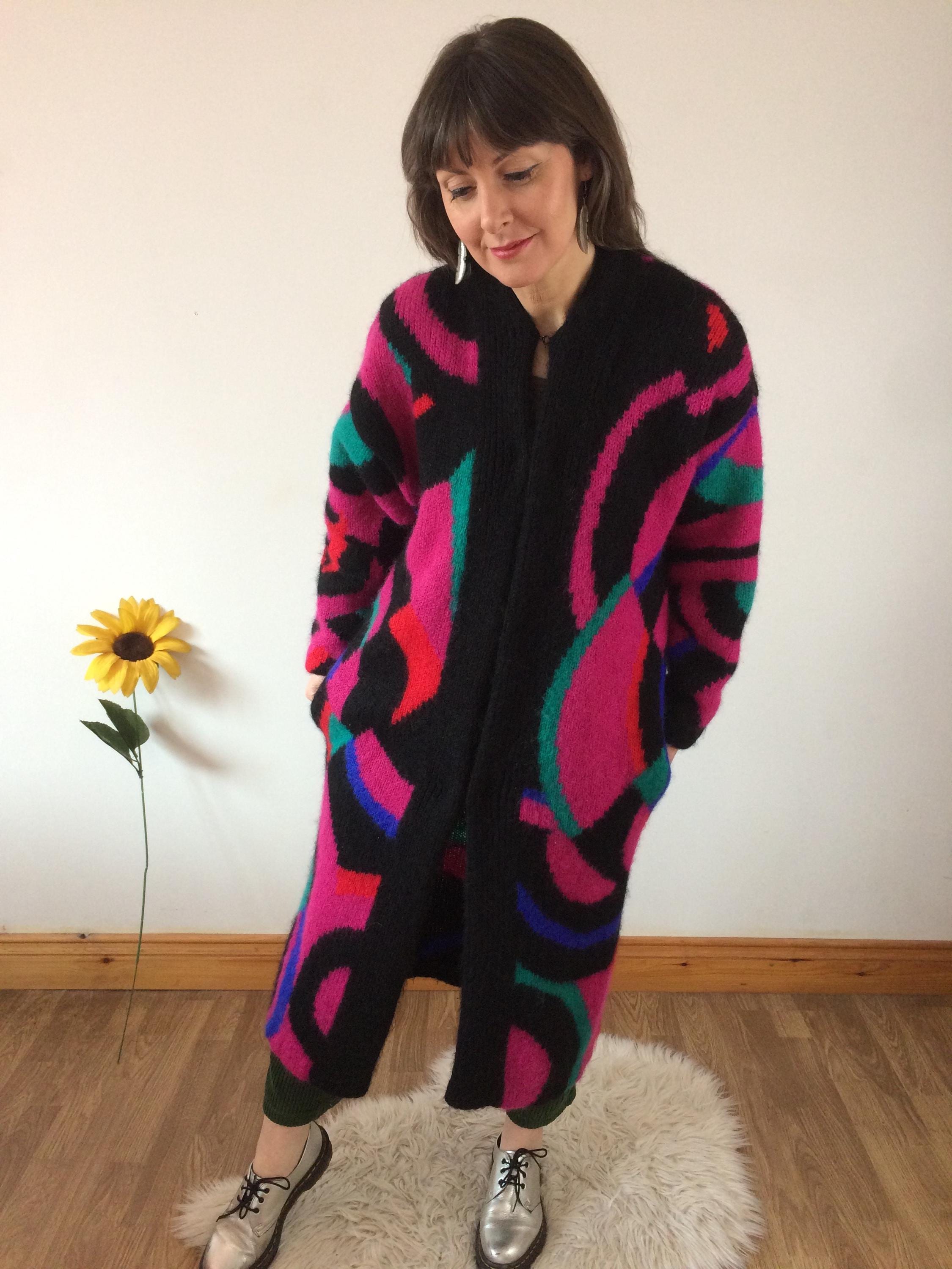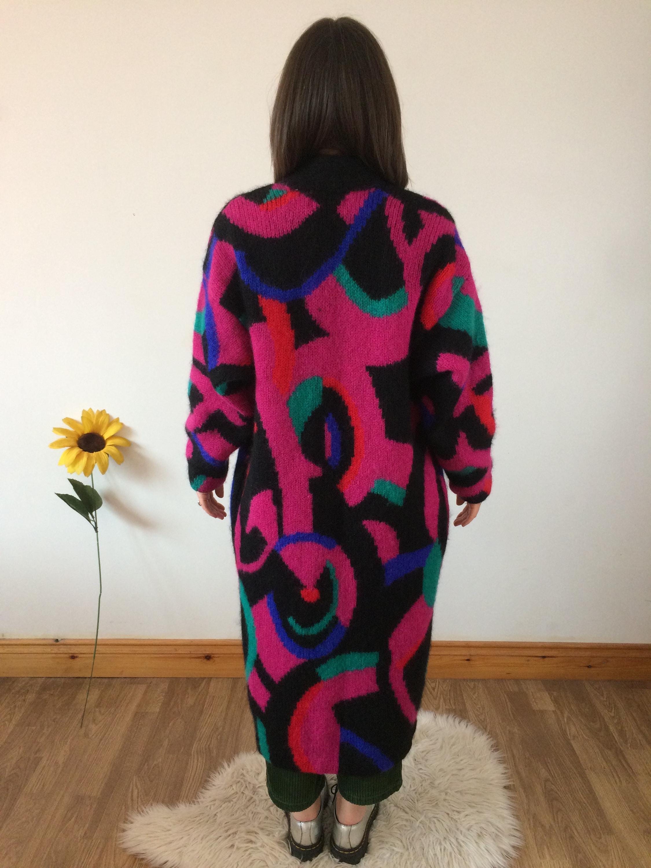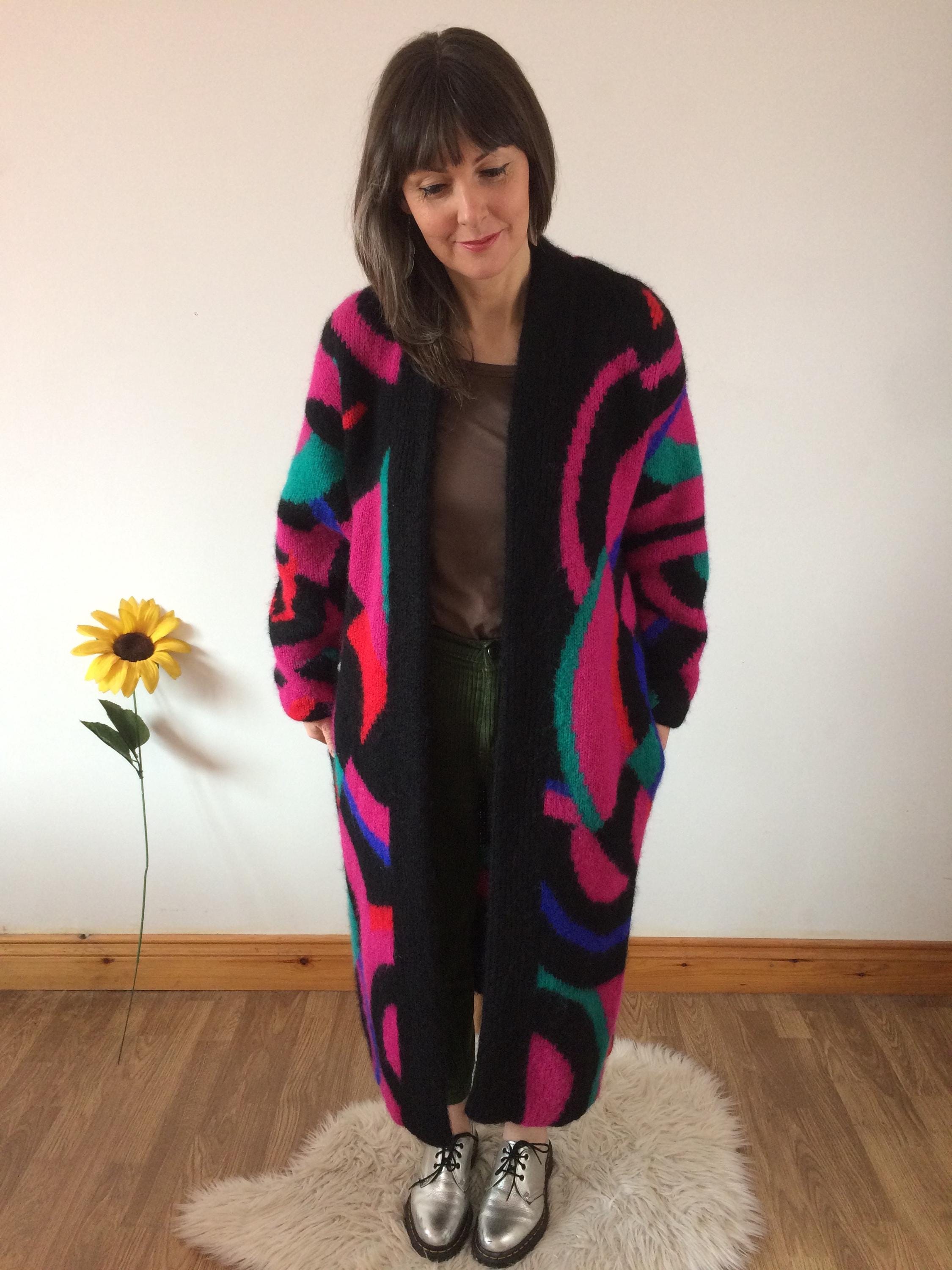 Vintage Black & Pink Colourful long Cardigan. Size M. In great vintage condition.