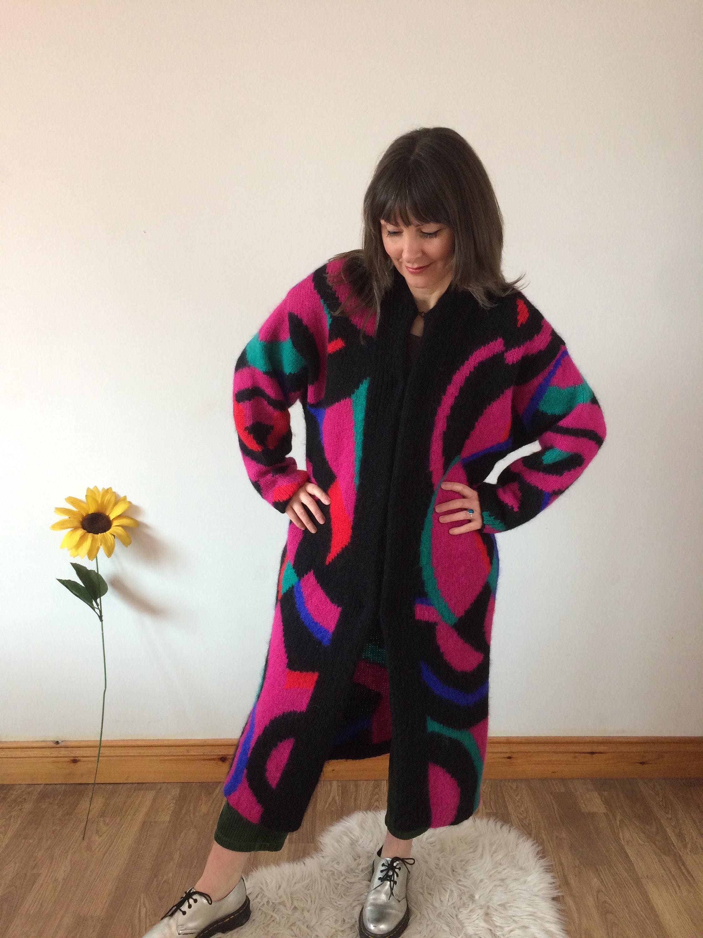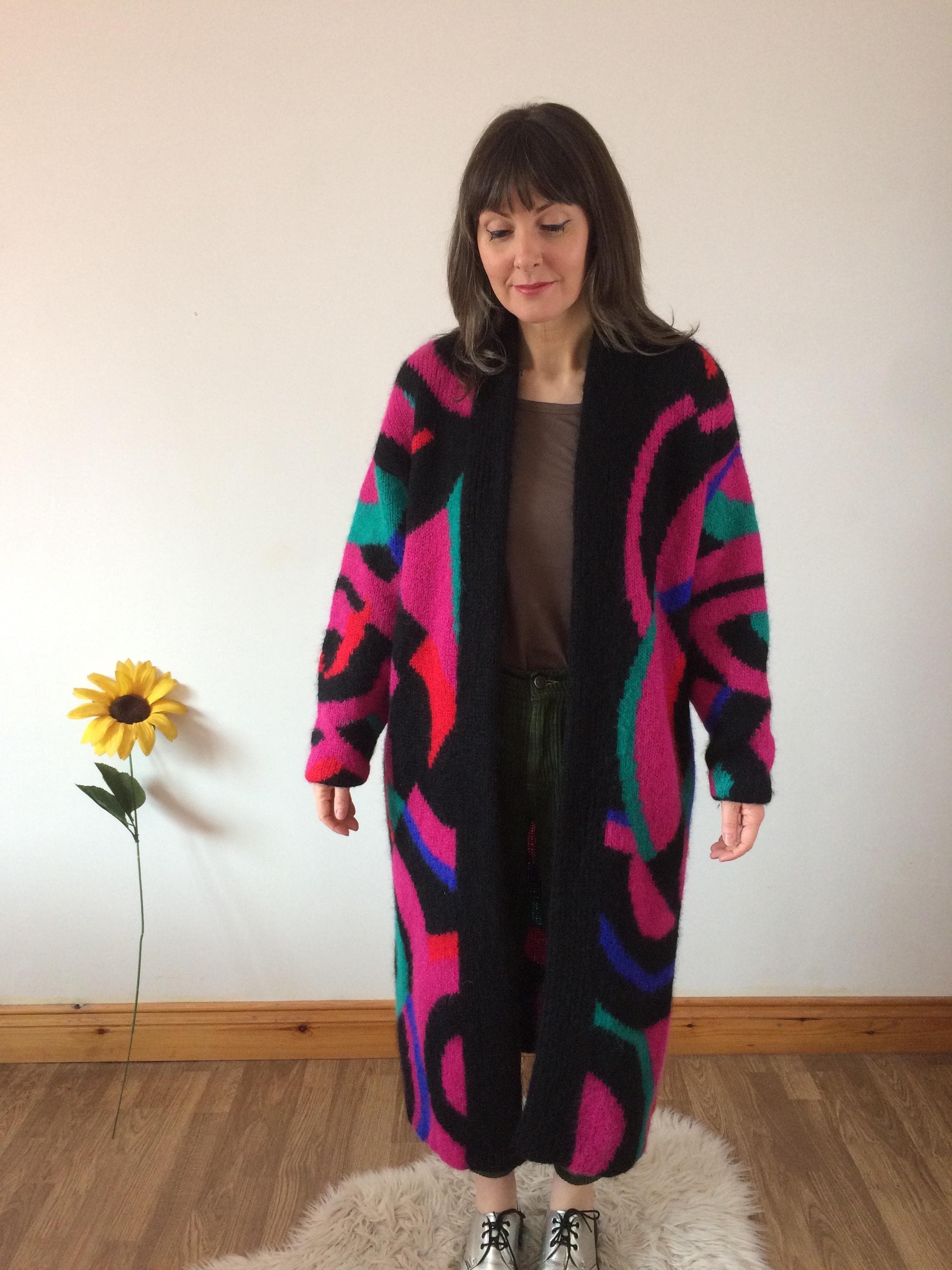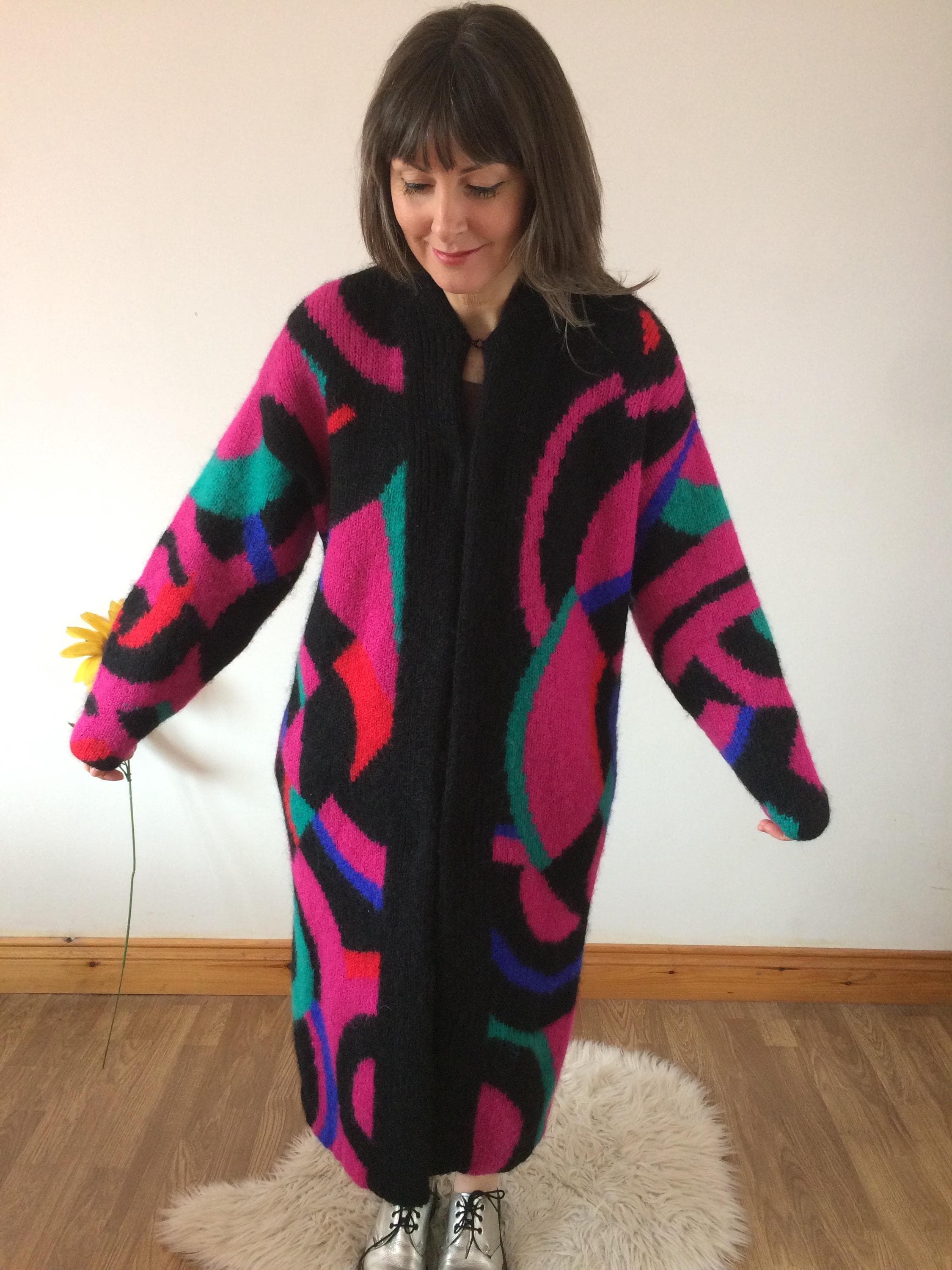 Vintage Black & Pink Colourful long Cardigan. Size M. In great vintage condition.