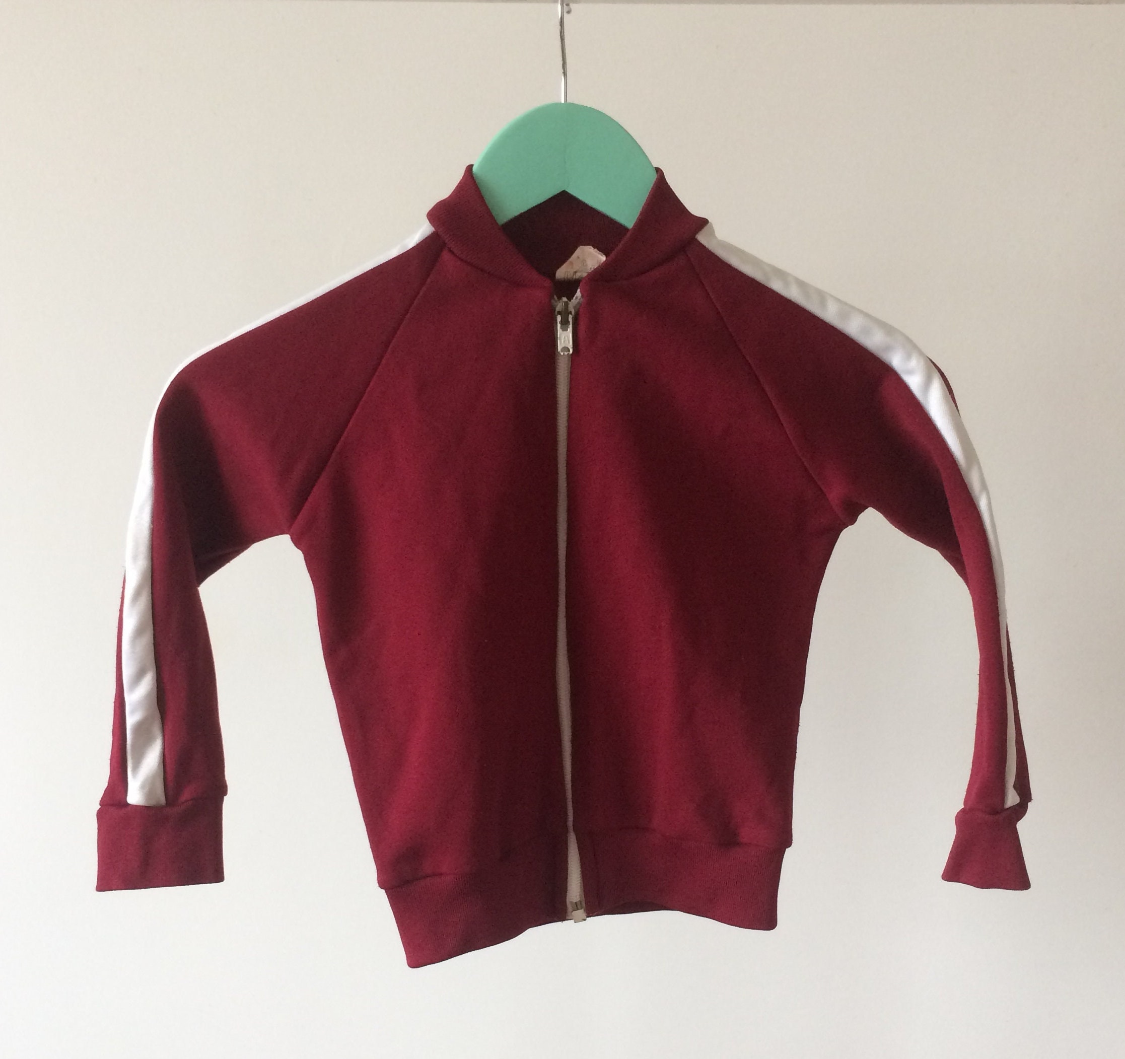 Vintage 90s Children's maroon with white stripe zippy top.