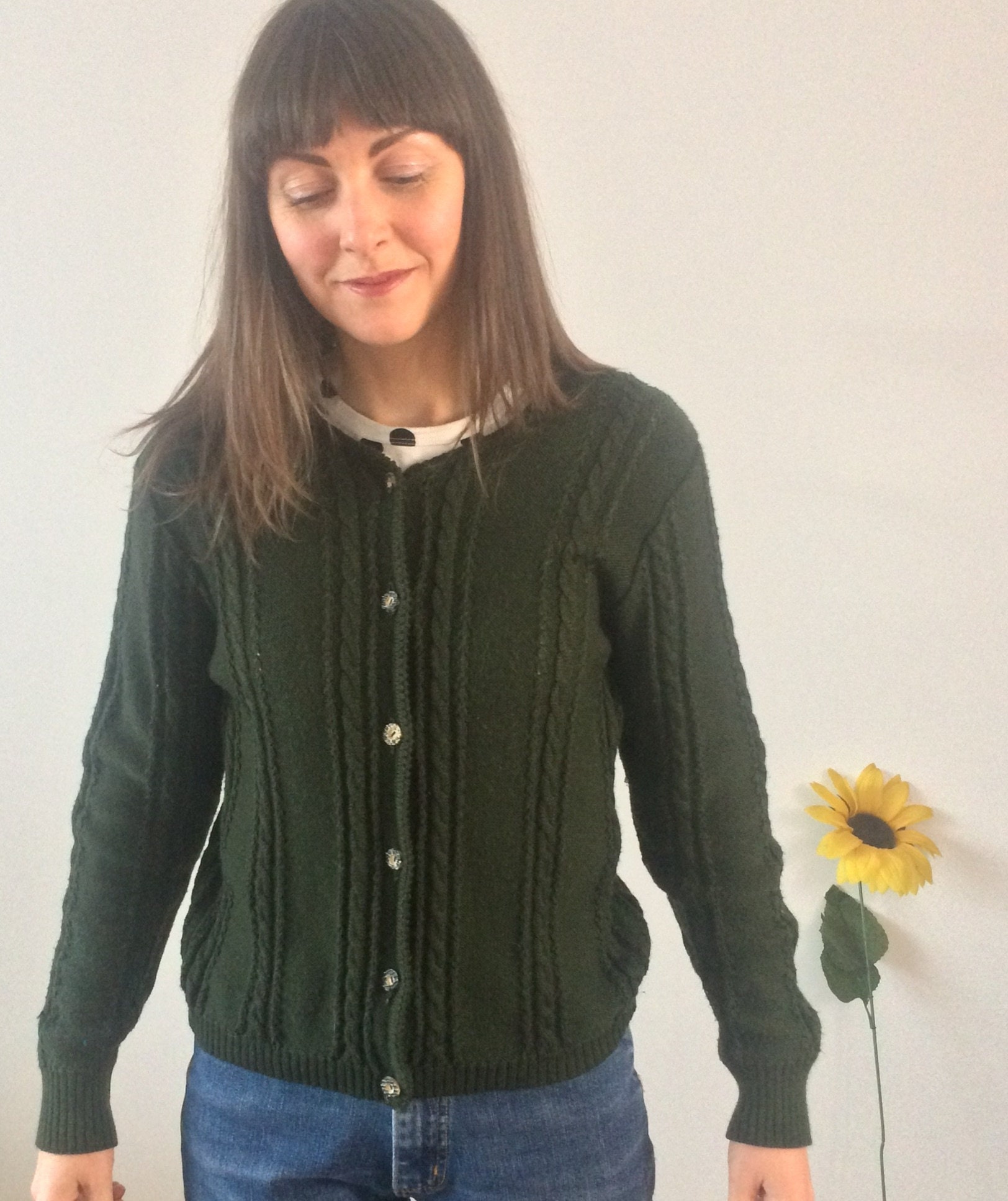Dark green woolen cardigan. Wool & acrylic mix. UK size 10.Should you require any information, measurements please contact us thank you for browsing 😀