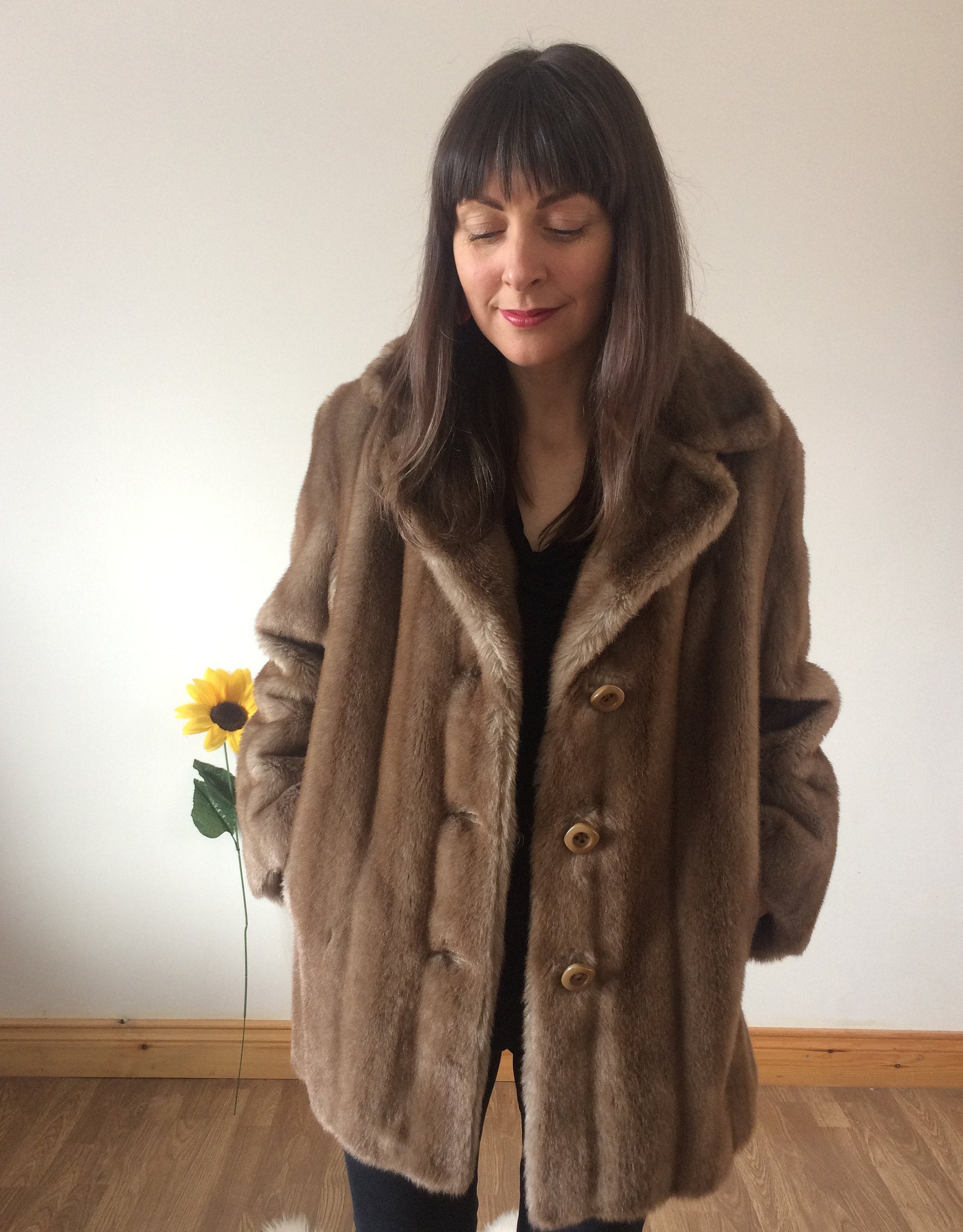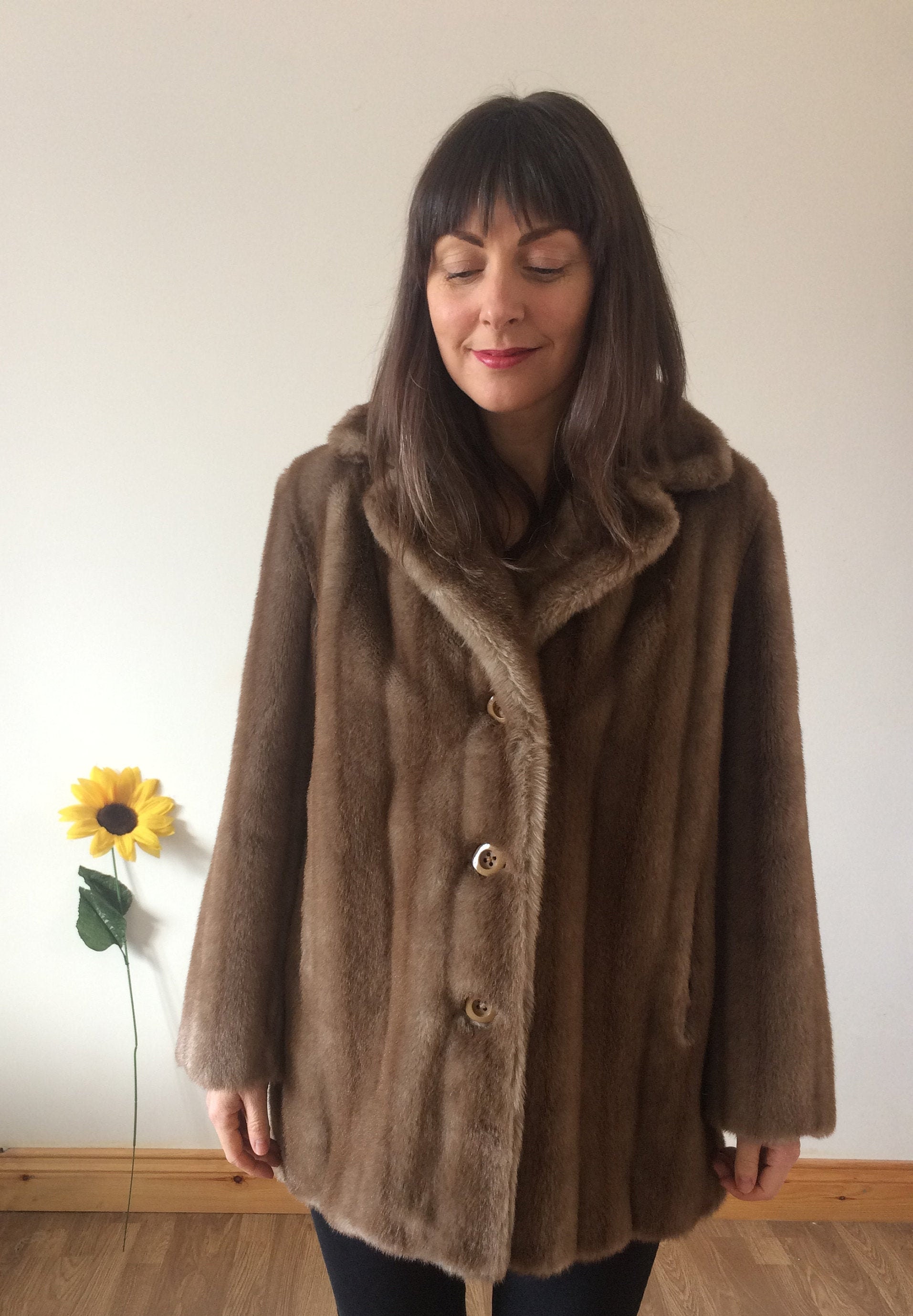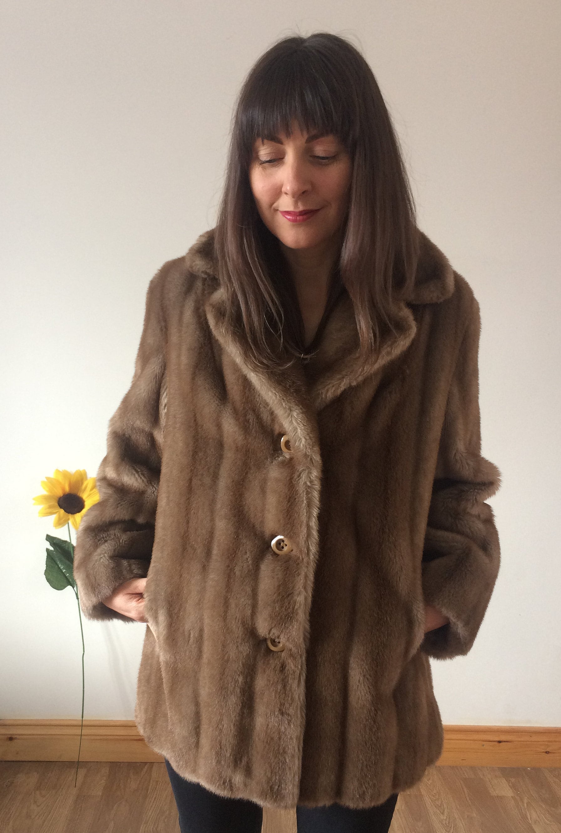 Vintage 70s light brown(caramel) faux fur coat. UK size 16. Model is a UK size 8 for reference. In great vintage condition. Should you require measurements, photos or product information please get in touch, I'd love to hear from you! Thank you for browsing :) x